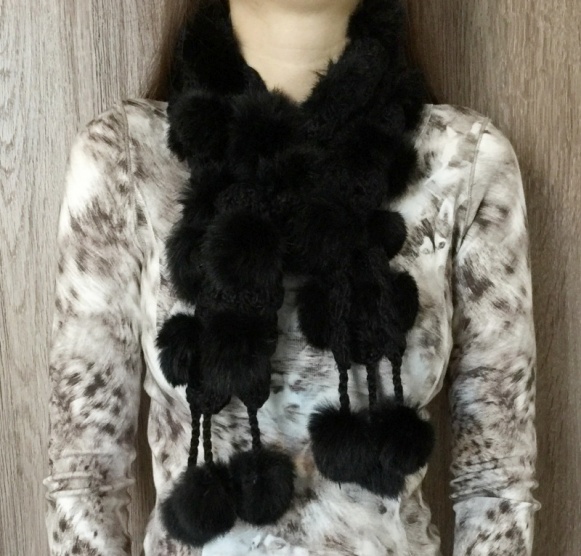 Délka 185 cm, šířka 12 cm, pravá králičí kožešinka, která nepouští chlupy. Drobné známky nošení na pletené části, kožešina 100% stav.