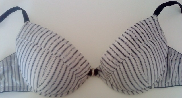 0Nabízím nošenou, ale zachovalou podprsenku H&M velikosti 80B. Uprostřed je ozdobná spona s kamínky, žádný není vypadnutý, drží jak přibyté.