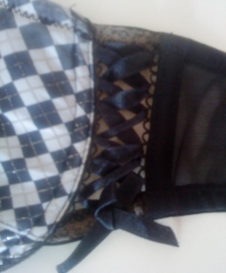 Barva je pěkná zachovalá akorát v podpaží trochu setřená, není tam tolik výrazná je to cca 1cm proužek na obou stranách. Podprsenka je dobře propracovaná, ramínka jsou odepínací vepředu, je tam knoflíček a "kšandy". Na jedné straně se mi knoflíček utrhl, takže je třeba přišít nový.