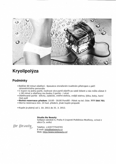 Prodám kupón na kryolipolýzu - liposukce zmražením.