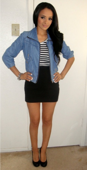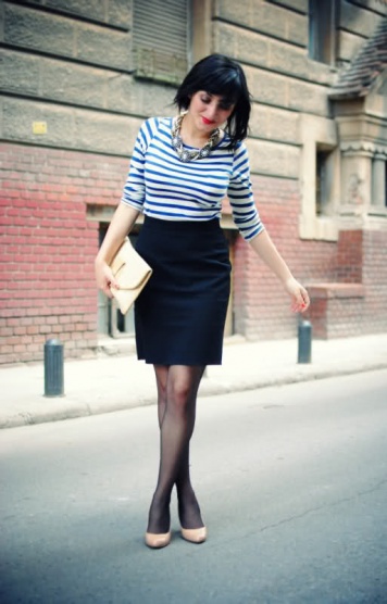 Mám obyčejnou černou pouzdrovou sukni (jako na fotce, ale ne až ke kolenům) a chtěla bych ji nosit normálně přes den, do města, školy atd. Ale když hledám na internetu, tak najdu jenom fotky, kde je tričko zastrčené dovnitř sukně a já bych to chtěla nosit s tričkem přes sukni.