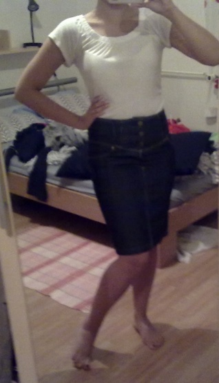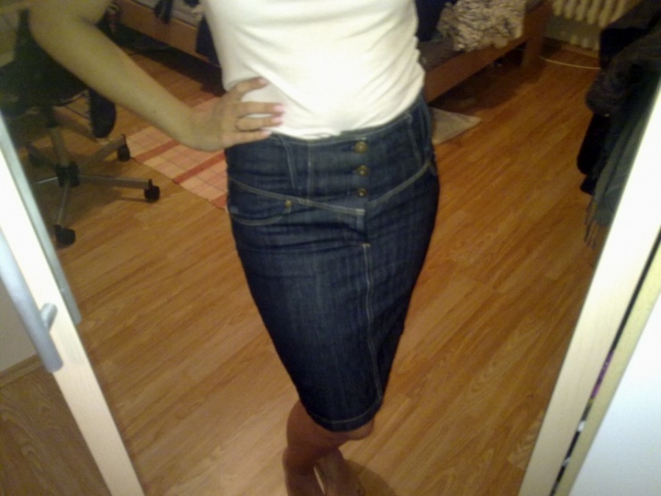 Nabízím tmavě džínovou pouzdrovou sukýnku s vysokým pasem, značky Orsay..Rozměry sukně: délka: 54 cm , šířka v pase: 38 cm , šířka u kolen: 40 cm.