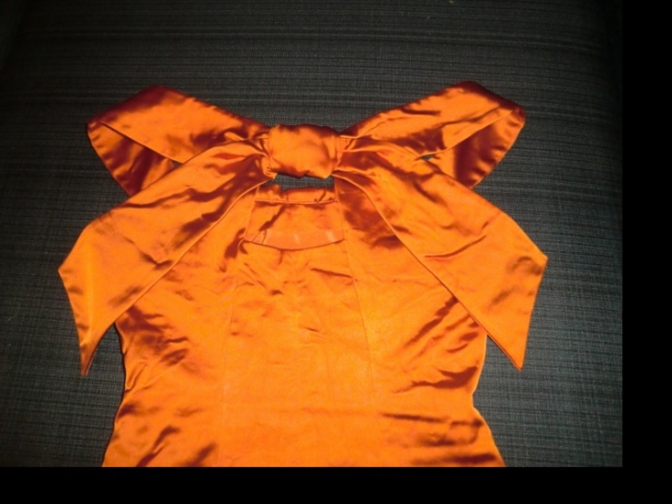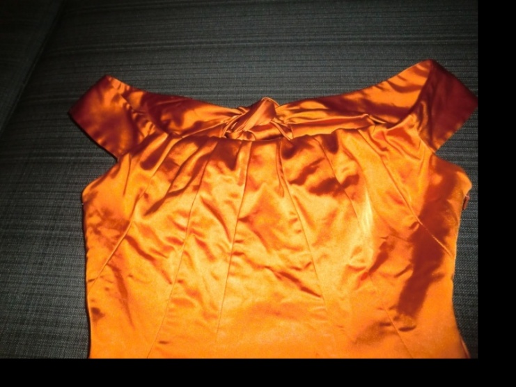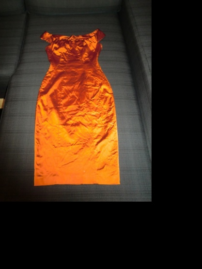 Prodám krásné pouzdrové šaty oranžovo-červené barvy. Řasení na prsou, zajímavě řešené na zádech. Zakoupené zde na VV, bohužel jsou mi ale těsné a nedopnu je. Délka 84cm, přes prsa 2x40cm, pas 2x33cm. Šaty jsou mírně elastické. Při mé výšce 172cm jsou ke kolenům. Na ramínku je drobný flíček. Po vyprání trochu vybledl, tak se mi ho nepodařilo vyfotit. Už jsem je tak koupila.