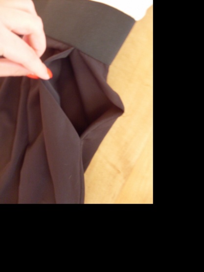 Na zádech zip, na sukni zezadu malý rozparek, aby byla pohodlnější na chození, a zepředu dvě malé skryté kapsičky.