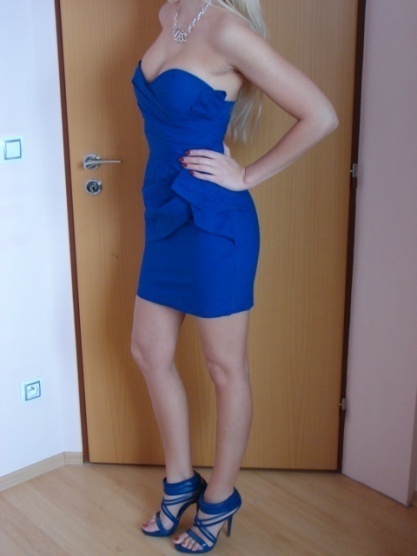 Prodám tyto modré pouzdrovky z Tally Weijl. Krásná výrazná barva, pevný, ale pružný materiál, prsa jsou trochu vyztužená. Vzadu na gumu a přes záda je černý zip.