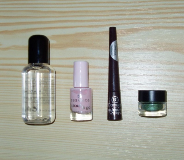 GOSH-oční stíny, odstín Emerald-tmavě zelené, stíny jsou jako pigmenty od Nyx, jsou třpytivé s kovovými odlesky, pro snadné nanášení je uvnitř i sítko, použité 2x, na mě moc tmavá barva, obsah: 1,5g cena: 50,-Kč