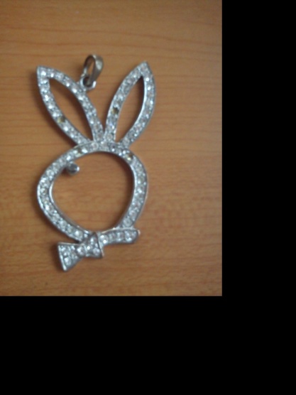 Prodám tento přívěšek playboy, jsou vypadlé 4 kamínky, ale když ho má někdo na sobě tak to není vůbec vidět Je velký 7cm x 4 cm