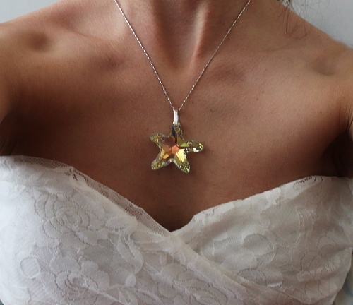 Nový přívěšek, největší velikosti, celková délka 5 cm, nabízím za velmi dobrou cenu. Zavěšen na masivní šlupně (očku) z pravého stříbra (puncováno). S tímto šperkem vzbudíte pozornost na každém kroku.