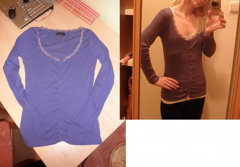Nošená ale v Ok stavu.Mě velká.Barva je fialová,to foto v zrcadle je foceno ve špatném režimu.Sedí S/M.