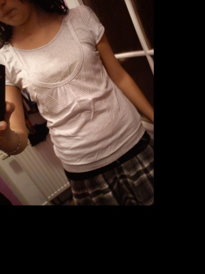 Proužkované, šedé dvojité tričko s tílkem