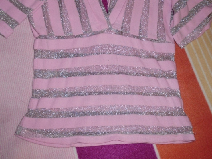0Nabízím super svetřík růžovo stříbrné barvičky s proužky. Velikost je S/M. Jinak je zcela nenošený a v top stavu