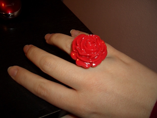 Reaguji na tulipanek: Já ten červený prsten dnes měla s: šedočerné slimky, dlouhá červená tunika s řasenými rukávky, kabátek a homeless čepice s připnutou kytičkou jako broží. Prsten jsem si koupila krapet větší, abych jej mohla nosit i na rukavici