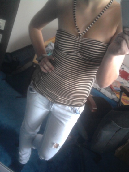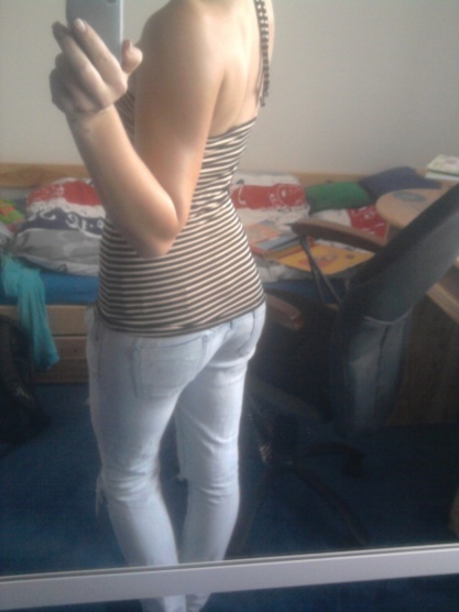 Ahoj, prodám tohle moc pěkné tílko, které jsem na sobě měla všehovšudy asi dvakrát- třikrát, necítím se v něm. Je k němu přišitá zevnitř tenčí podprsenka, doporučuji spíše pro menší poprsí. Moje cena: 200,- plus 50,-pošta
