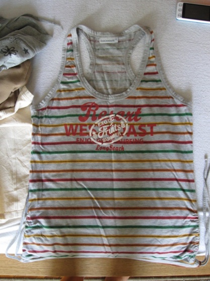 Sportovní pruhované tričenko. řekla bych, že je mezi velikostí M/L. Ale vypadá líp, když na vás tak trošku visí