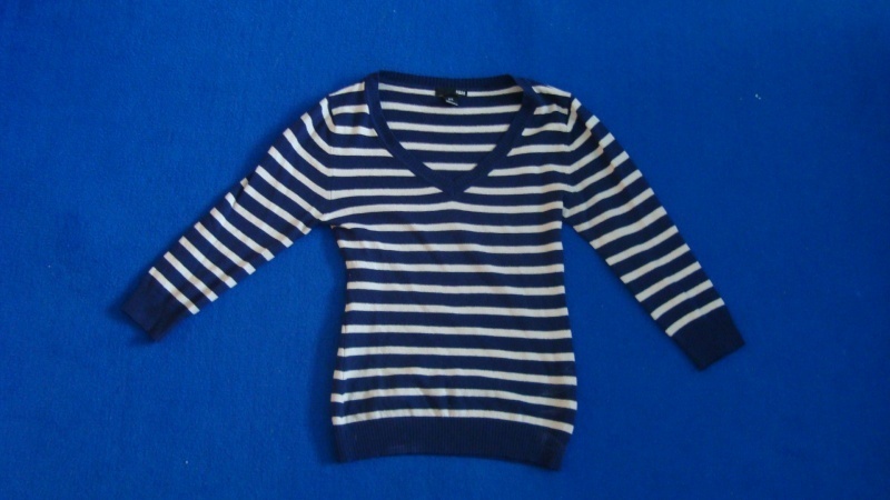krásný pruhovaný svetr z HM vel. XS, tmavě modrá s béžovou. 50 Kč plus pošta