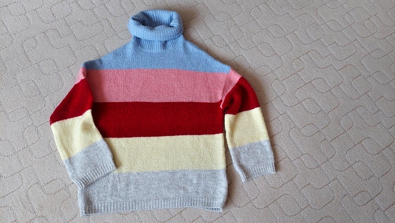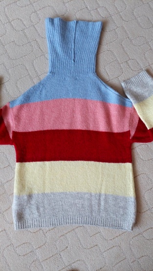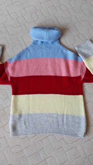 pěkný a hebký, příjemný na nošení, hřejivý, 70% akryl, 27% polyamid, 3% elastan, bez vad, délka 66 cm, šířka 53 cm, délka rukávu od roláku 72 cm, Zásilkovna 69 Kč