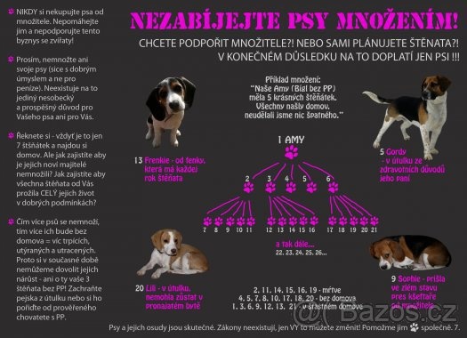 Tady ještě na pročtení pro naivní osoby, které si myslí, že nakrytím jedné feny se nic neděje. Podívejte se na letáček bíglice Amy. V několika bodech vypovídající to, co se tady celou dobu snažím říct.