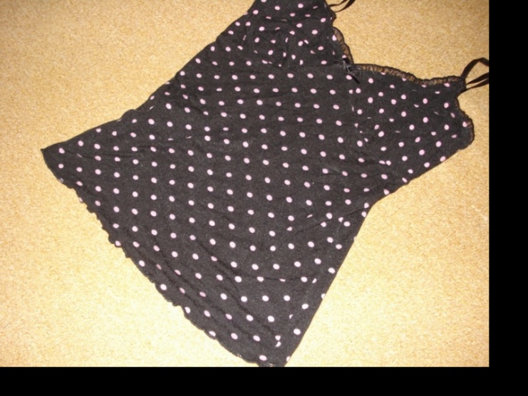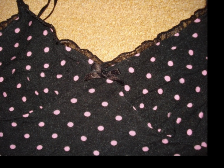 Nastavitelná ramínka, na okraji krajka....Dělá pěkný dekolt..černá s růžovými puntíčky..