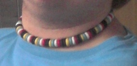 Ale koupila jsem si klasické rasta barvy + černou k tomu a udělala jsem vždycky malou kuličku, tu jsem rozplácla a udělala dírku