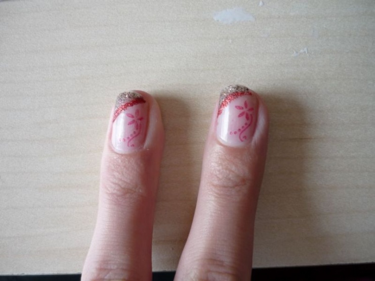 tak jsme si se sestrou také pořídili razítka, ale z aukra nejake za stovku aj s destičkama,ale super,zatím teda máme špatné laky ale na poprvé to šlo i s nimi,tak posílám 2 fotečky našeho prvního pokusu.