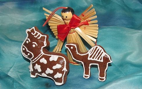 Těsto: 10 dkg másla, 22 dkg mletého cukru, 45 dkg hladké mouky, 3 vejce, 2 polévkové lžíce skořice, 1 lžíce kakaa, 1 lžíce medu, 1 lžíce rumu, 1 kávová lžička pomletého anýzu, ½ lžičky sody, 6 ks hřebíčku