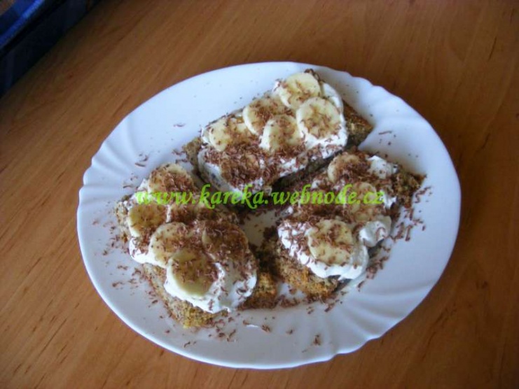 Slepíme marmeládou,zdobíme neslazenou šlehačkou,ovocem a posypeme strouhanou čokoládou