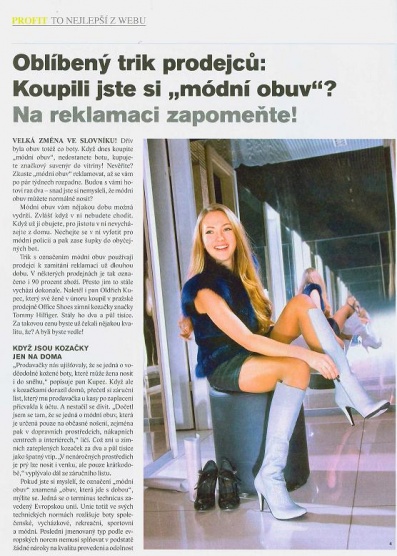 Máš u paragonu obuv označenou jako vycházkouvou, společenskou, modní? Je to pro reklamaci dost důležité... Jestli jako módní, tak máš zřejmě smůlu (staronový trik prodejců - jakmile je obuv módní, tak na ní neplatí 2letá garance). Mě se takhle rozpadly boty po 5 nošeních, naštěstí jen tenisky za 500 z Deichmannu. Jinak v novém čísle časopisu Profit je o tom článek. Pán na tuhle prodejnu chce podat žalobu a hledá další lidi, kteří by se s podobnou situací přidali... Zkusím sem vložit článek.