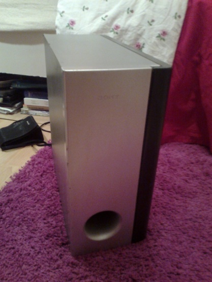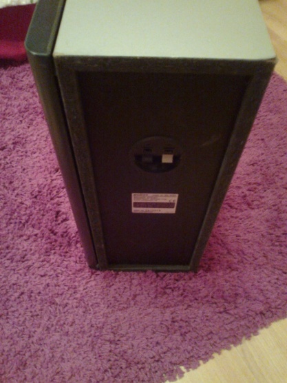Tento reproduktor jsem dostala již jako použitý, používala jsem ho k bedničkám asi 2 měsíce, ale po rekonstrukci mi zabírá zbytečně moc místa, ale je mi ho líto vyhodit, třeba ještě někdo využije. Byl napojen na obyčejné bedničky a rozdíl zvuku byl poznat, né převratně, ale byl. Vypadá to, že z boku měla být nějaká síťka či co. Viz. Fotografie.