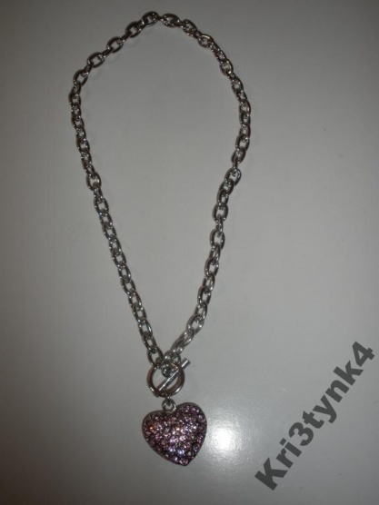 Nabízím nádherný náhrdelník s přívěskem ve tvaru srdce s krásnými lesklými růžovými krystalky.