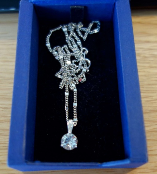 Pravý Swarovski řetízek s přívěškem. Průměr kamínku 0.7 cm, originál krabička. Poštovné 44,-.