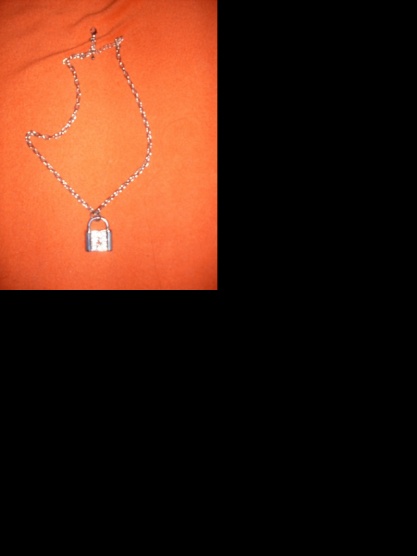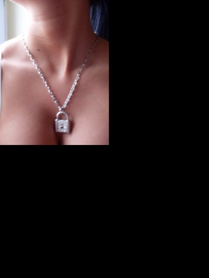 Přívěsek je ve tvaru zámku zdobený zirkony.