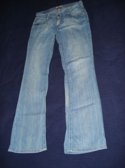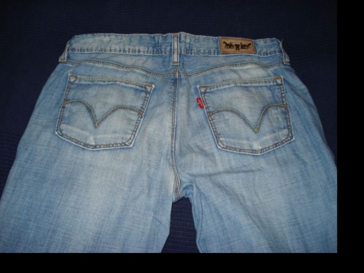 Rifle Levi´s ze slabšího materiálu. Velikost 30/34. Délka nohavice od rokroku - 83 cm, Pas 38,5 cm. Fotka na postavě je obrázek z internetu, ale myslím, že jsem našla ten správný model.