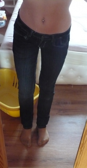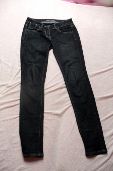 Tmavě modré až černé, lehce vyšisované rifle zn. PIMKIE. Nošené, avšak perfektně zachovalé, ještě nadělají hodně parády