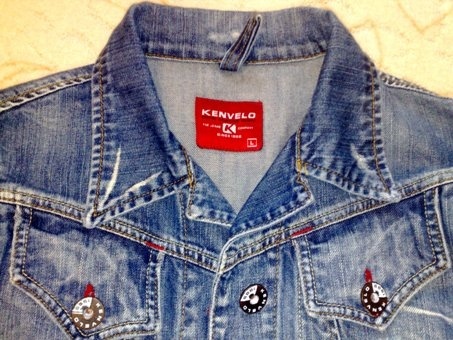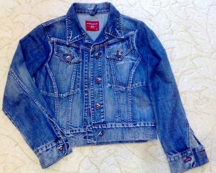 Prodám tuto džisku, klasický střih, pěkně šislá, "drblé" efekty, ozdobné značkové knoflíky, bílé a červené štepování. Vel. L, odpovídá 38. Málo nošená, 100 % stav. Cena 360 Kč. Můžete zaplatit stravenkami !!