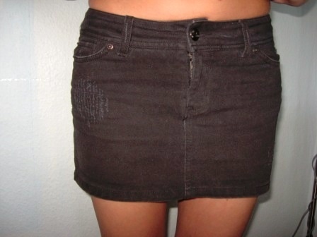 černá riflová minisuknička Amisu kupovaná v Pražském NewYorkeru. Skoro nenošená, vyrostla jsem z ní.