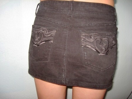 Ve předu na zapínání na zip, vzadu dvě kapsičky se zdobným vyšitím, nic extrémního, spíše decentní.