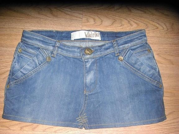 Super nová, pouze vyzkoušená riflová minisukně. Dovezená z Turecka (mě je bohužel menší). Po stranách kapsy. Zlaté knoflíky a vzadu zlatý Kikiriki štítek. Trošku elastická (98% bavlna, 2% elastan). Zadní kapsy dělají pěkný zadek
