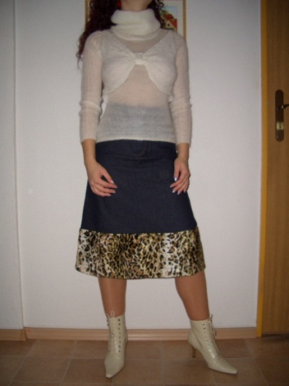 riflovina tmavá modrá, spodní lem leopardí vzor jakoby z jemného plyše
