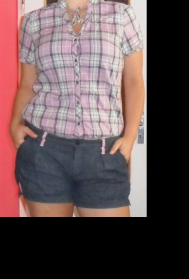 Predám minimálne nosené riflové kraťásky tmavomodrej farby.Velkost je písaná M.Ale podla mier je to L.Putká a boky kratias sú riešene károvanou ružovou farbou.Navrhujem cenu 280,-vč pošty.
