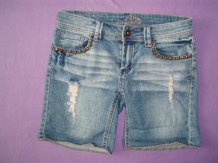 Prodám tyhle riflové kraťásky značky Ann Christine. Měla jsem je pouze 2x, takže jako nové, bez jediné chybky. Jsou mi větší. Já nosila ohrnuté, ale je možné nechat volně (viz. foto). Trhané, zdobené kapsy. Velikost uvedena 34, ale rozhodně neodpovídá (viz. rozměry).
