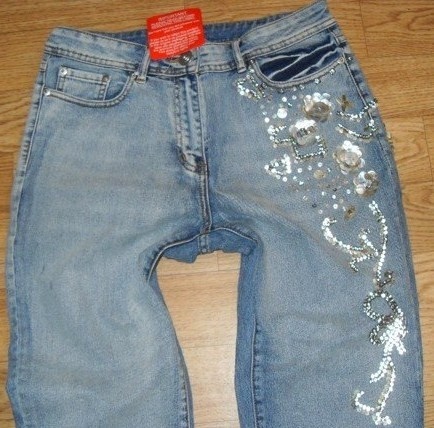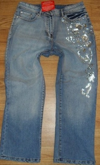 Prodám tyto nádherné dámské riflové 7/8 kalhoty s korálky za 300 kč včetně pošty…Nové, nenošené, jsou mi bohužel malé, jinak bych se jich nevzdala….100% stav