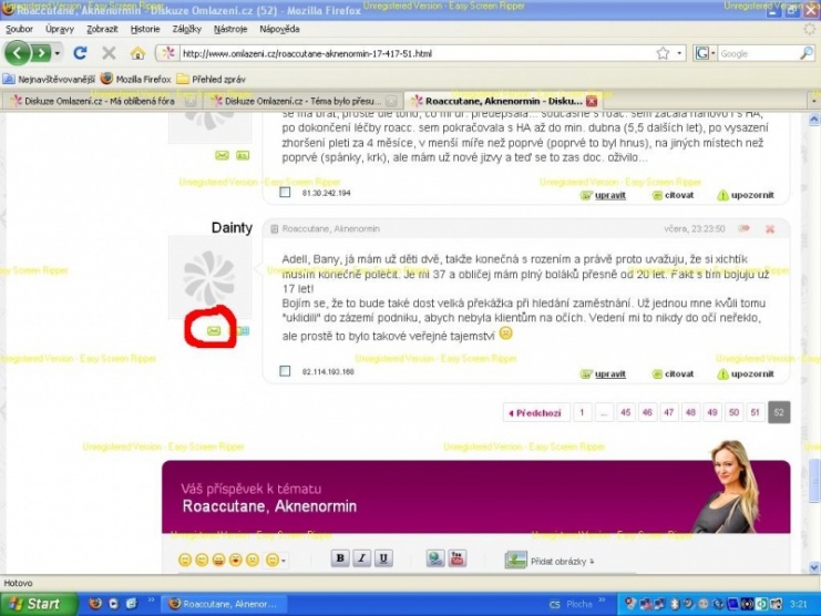 Mě by momentálně nejvíc zajímalo jak je to po braní R. s otěhotněním a jestli je tady větší pravděpodobnost návratu akné (při nebo po těhu). Podle toho co píše Bany, tak asi ano. Já jsem totiž případ, že se mi akné trochu zhoršilo v těhotenství, ale úplně katastrofálně po porodu. Před cca 14 dny jsem přestala kojit (pro Bany - neměla jsem už mlíko