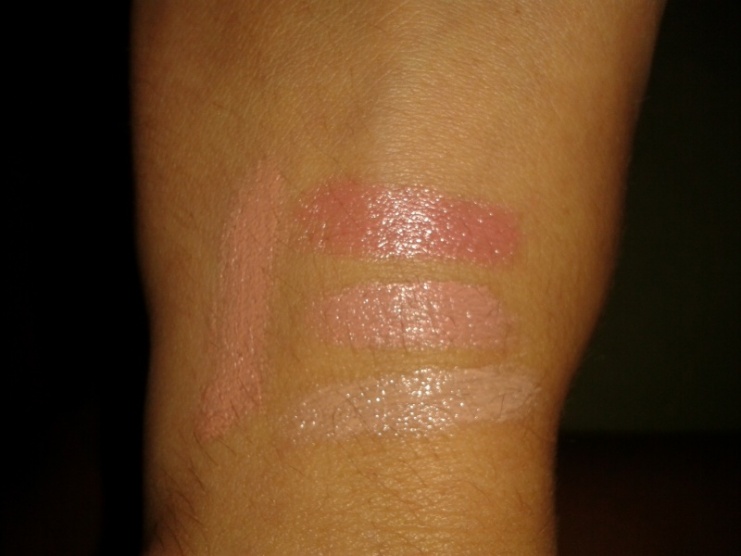 MUA Bare (trochu víc tělová), GOSH Darling, Maybelline Color Sensational Nude Nuances