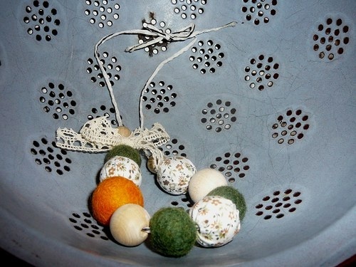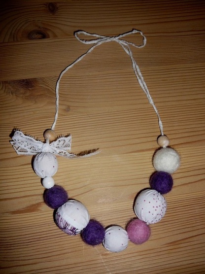 0Ručně šité korálky z kvalitní zahraniční jemné 100% bavlny, plsťenky, přírodní dřevěné korálky, dřevěné akrylky - navlečené na hedvábné šňurce. Cena/ks.