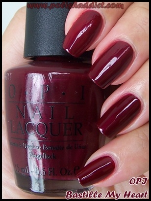 Určitě Barry M Red Wine (skvěle drží!) a China Glaze Ravishing, Dahling Ten OPI Bastille my Hear taky není špatná volba (hm, už jsem ho dlouho nelakovala