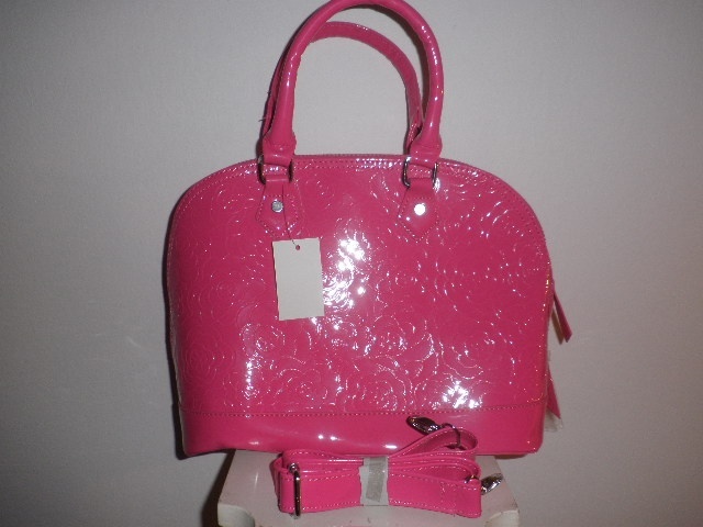 Krásná růžová kabelka z lesklého materiálu, nošení v ruce, odepínatelný popruh, díky kterému ji můžete nosit i přes rameno. Oblíbený tvar.