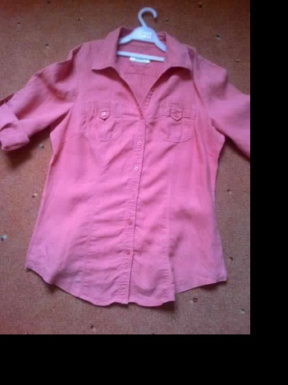 0Nabízím růžovou lněnou košili,měla jsem ji asi 3x na sobě.Na prsou má dvě malé kapsičky a rukávy jdou ještě sepnou knoflíkem na kratší rukáv.Skvělý stav