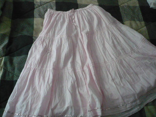 Ve spodní části je lemovaná flitry, sem tam vyšitý motýlek. Barvička je krásně světle růžová. Velikost je uváděna xxl, ale odpovídá i L. Cena 50,-+pošta