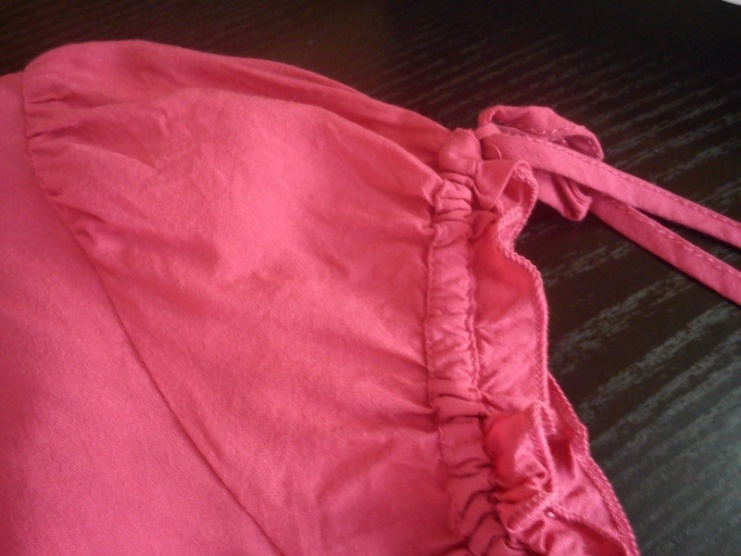 lehounká tunička ve předu se zdobením stažená gumou v pase,ve výsřihu má knoflíčky a rukavy se šněrováním,které se dají libovolně utáhnout