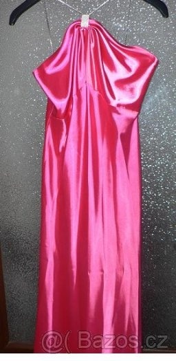 Prodám dlouhé až po zem šaty vel: 42(odpovídají vel M i malé L) jsou na vysokou postavu Ramínka mají udělány s kamínku i obdobu v popředí na hrudníku. celková délka šatů je-1,37m(měřeno bez ramínek) šířka přes druhník-42cm jsou ze saténu